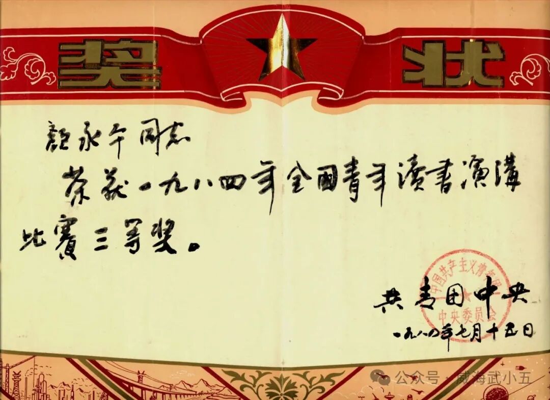 1990年他就成了全国演讲新秀里的头一名,拿过三次全国演讲大赛一等奖,什么“全国当代演讲教育事业杰出贡献奖”“终身成就奖”,加起来有十几个。