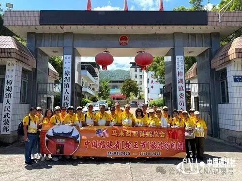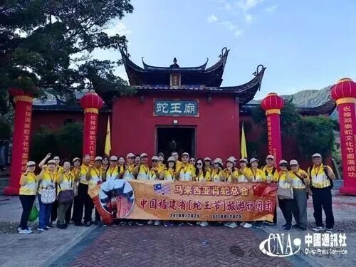 "马来西亚蛇肖总会长颜进明博士率32人代表团参加福建樟湖镇蛇王节庆典,这是源于明代、融合闽越文化的省级非遗活动,以活蛇巡游、放生祈福为特色,完整保留了独特的蛇文化传承体系。"
