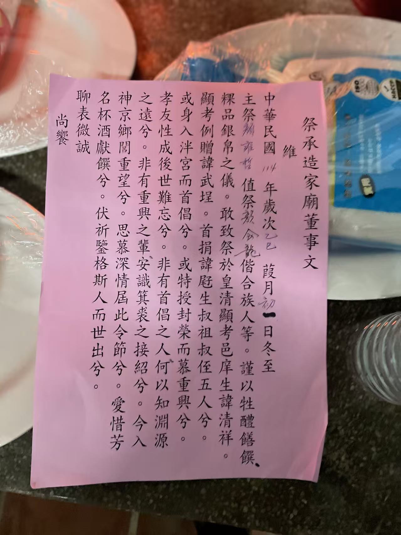 台湾颜文贺:台湾省台南下營冬至夜颜氏族人祭祖