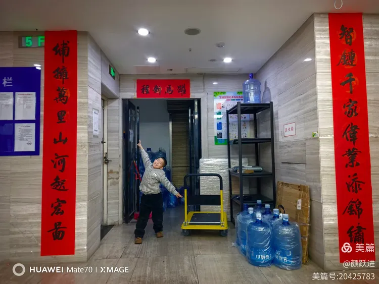 幺儿琦琦听说我要去公司贴春联,非要跟着去。智埔公司每年换一副春联的传统不能丢——今年的联语是: