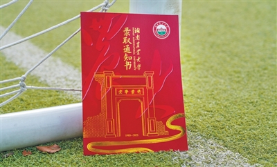 湖南农业大学2025年本科录取通知书内页,“百年学府 立德树人 逐梦湘农 激扬青春”16个题字,是“杂交水稻之父”、湖南农业大学名誉校长袁隆平院士对学子的殷殷期盼。题字旁,一蔸饱结籽实的稻穗,是以袁隆平院士为代表的一代代师生,为“愿天下人都有饱饭吃”而躬耕农业的生动表达。