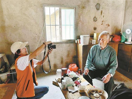 同心慈善会为乡村老人拍摄个人照。