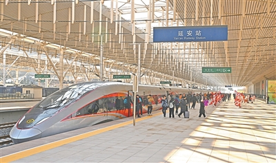 “未来,将有更多人乘着高铁列车来延安,来读延安革命旧址这本‘永远读不完的书’,看今天延安的山河巨变。”目送列车飞驰,国铁西安局延安车务段客运科科长徐涛说。