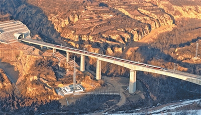 12月26日,一列复兴号动车组列车驶过西延高铁洛川—富县段。 |