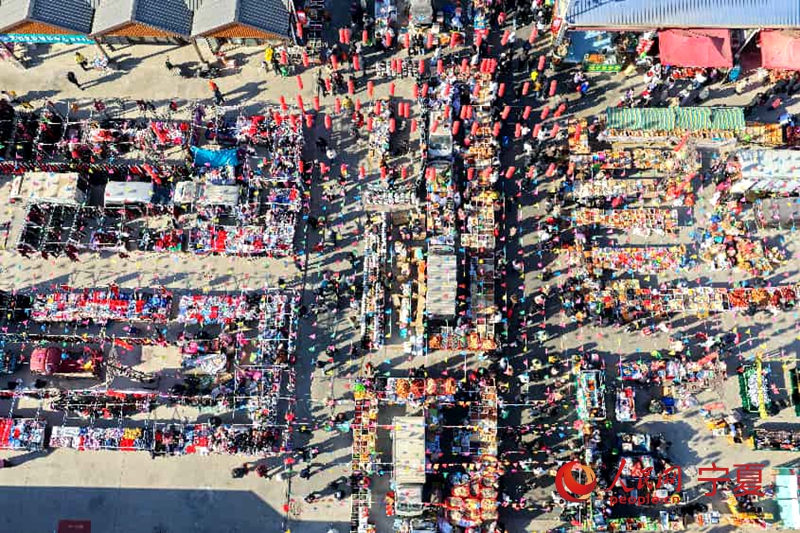 琳琅满目的年货、热气腾腾的小吃、熙熙攘攘的人群……早上10点,位于宁夏银川市贺兰县的金贵大集已是人声鼎沸,处处洋溢着浓浓的新春气息。