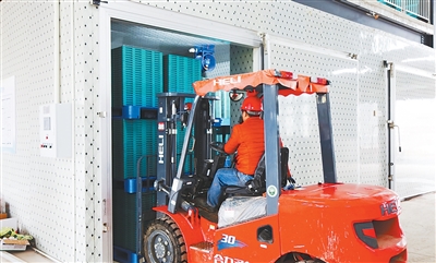 图为秧盘被送入暗化催芽室。 |