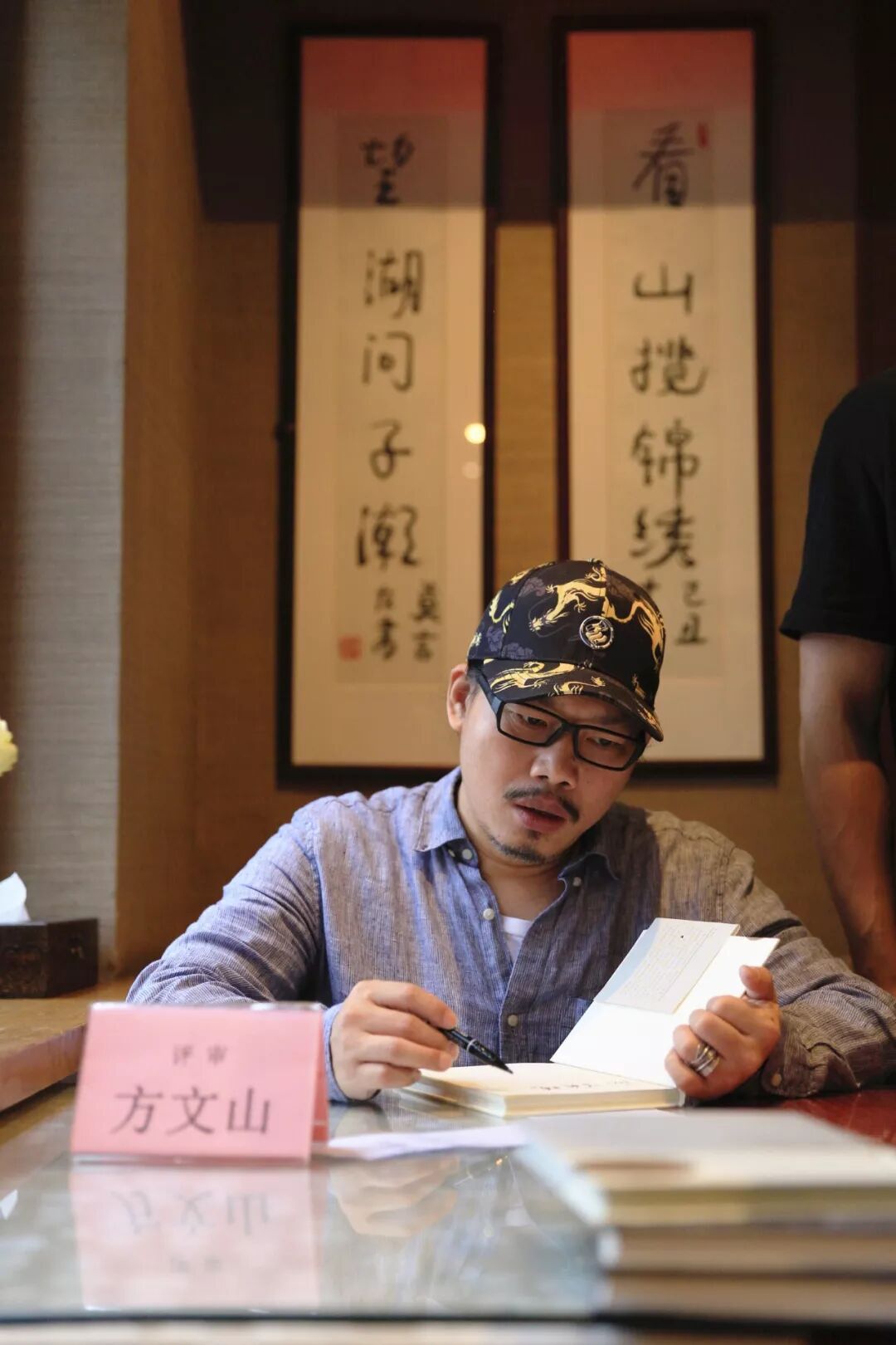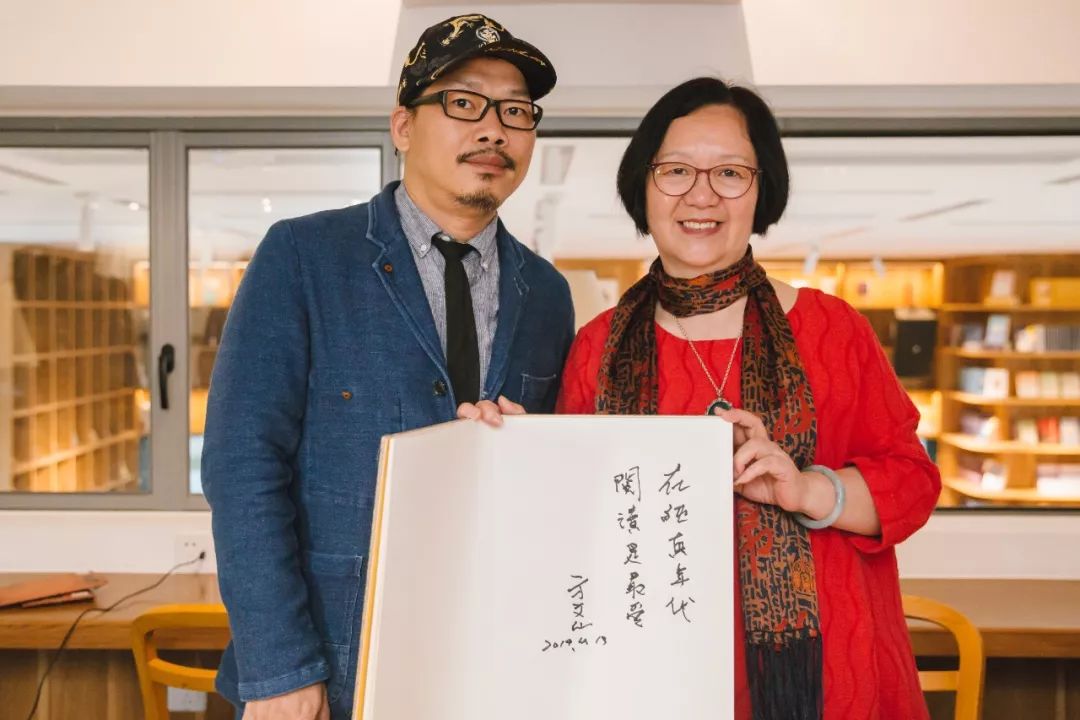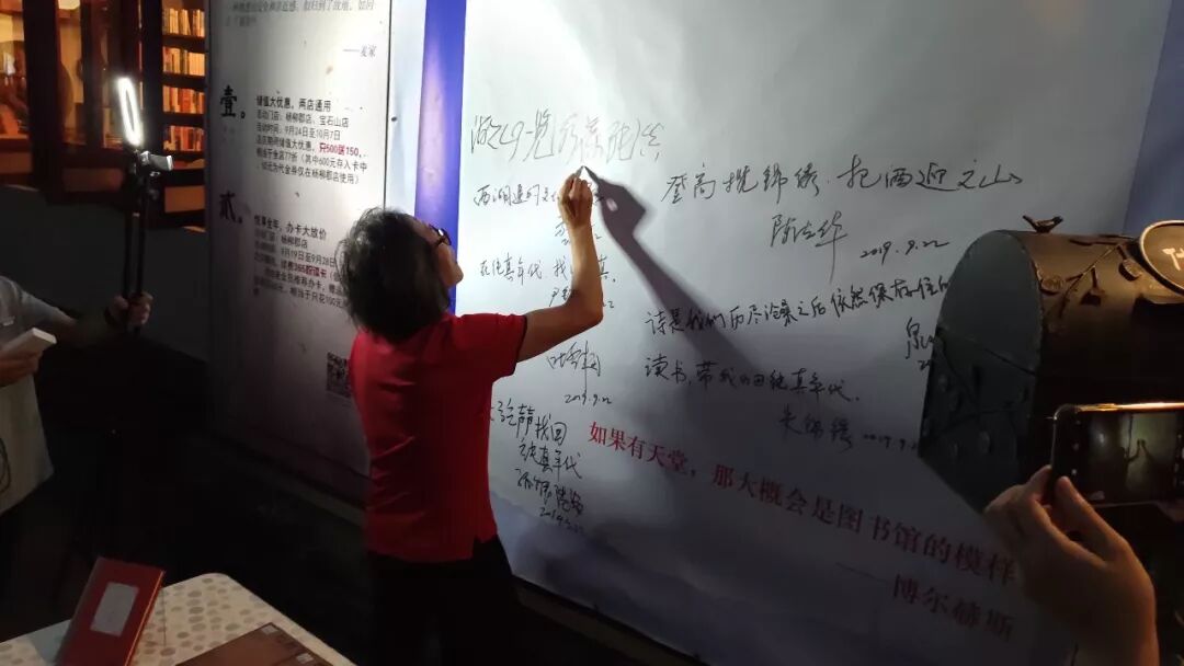 方文山再度来到纯真年代书吧,应书吧少主人盛厦之请题写:西湖边的文化客厅