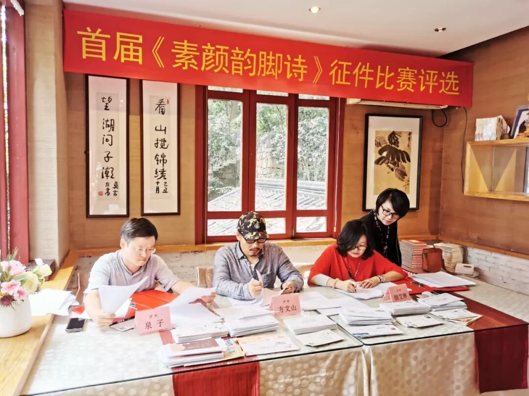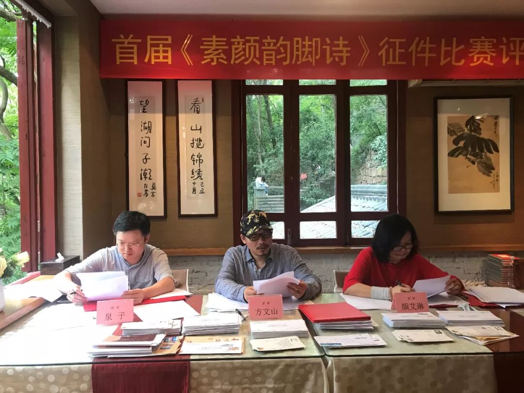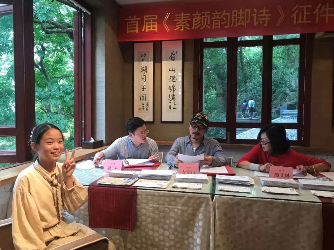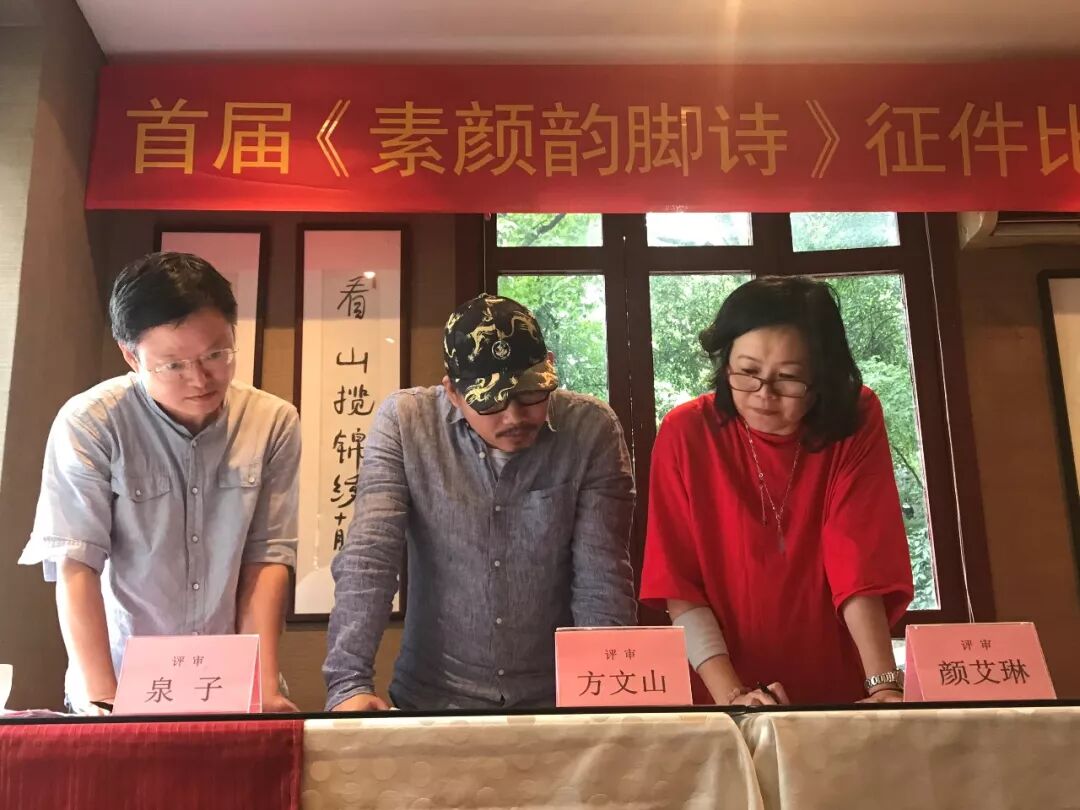 在纯真年代书吧的评选现场,方文山与诗人、杭州市作协副主席泉子、台湾两岸桂冠诗人颜艾琳仔细认真斟酌,商定评选出“素颜韵脚诗”全国征选终评入围作品,鼓励奖掖“下一个方文山”的产生。