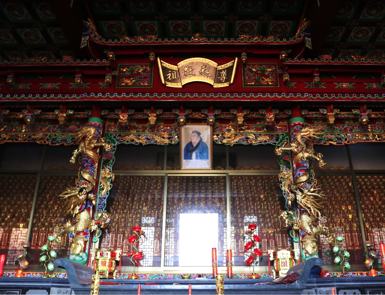 颜氏宗祠的风光迷人,其景色之优美不仅入眼更能入心,入眼的是它的层台累榭,入心的是它的古韵芬芳,颜子像、钟鼓楼、颜体楹联,处处透着这个家族深刻的文化底蕴,是支撑起这座祠宇的文化灵魂。