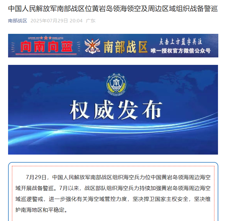 2025年07月29日20:21 | 来源:南部战区微信公众号