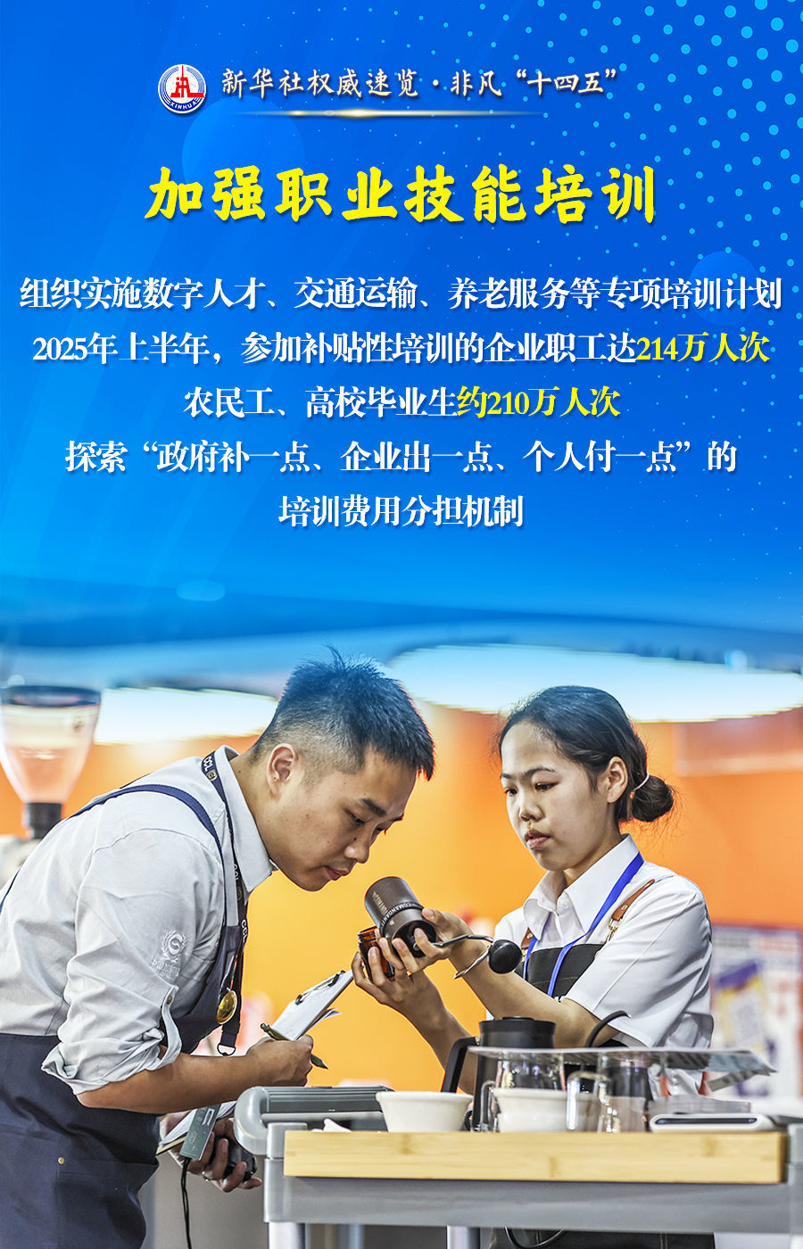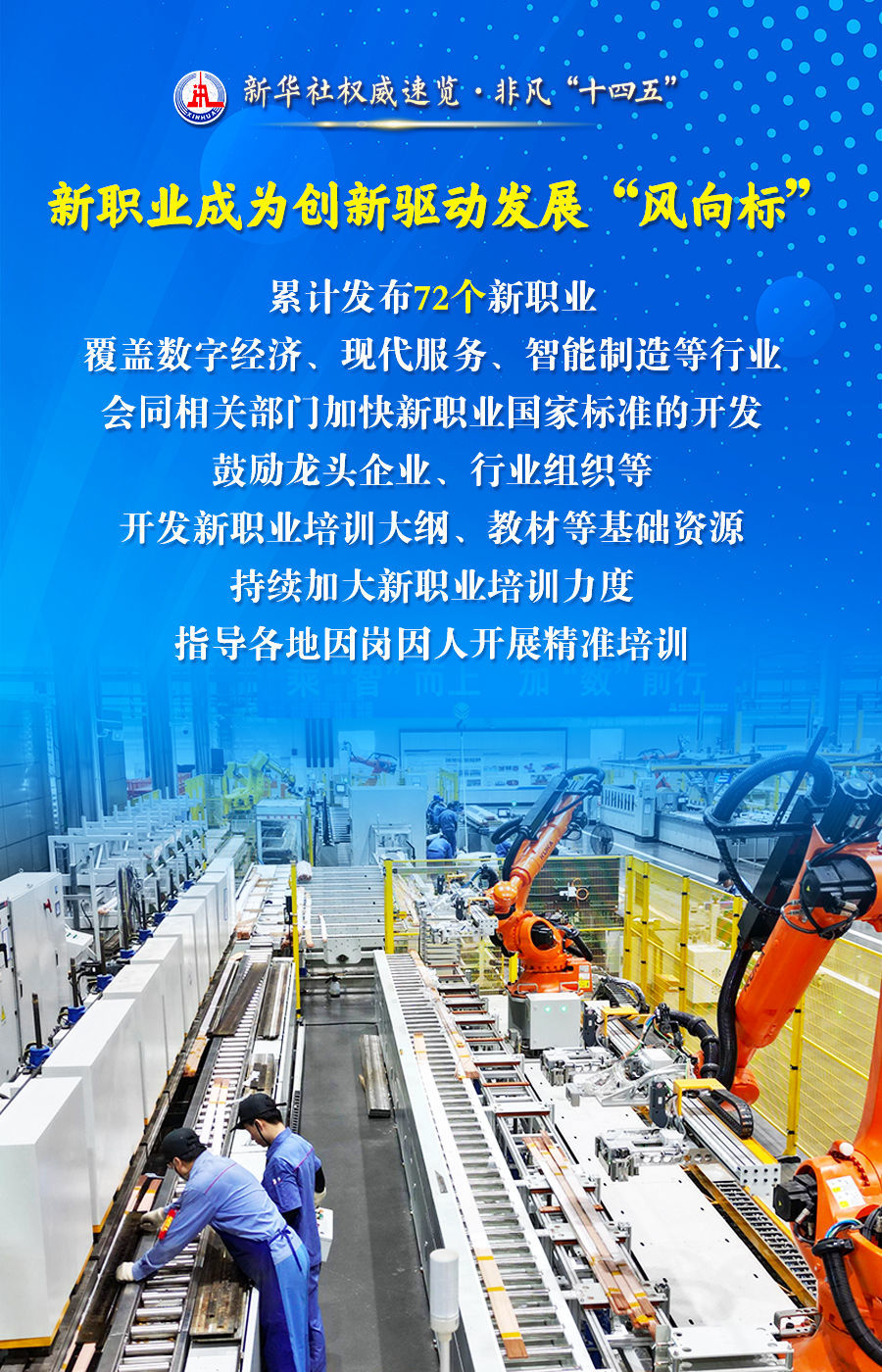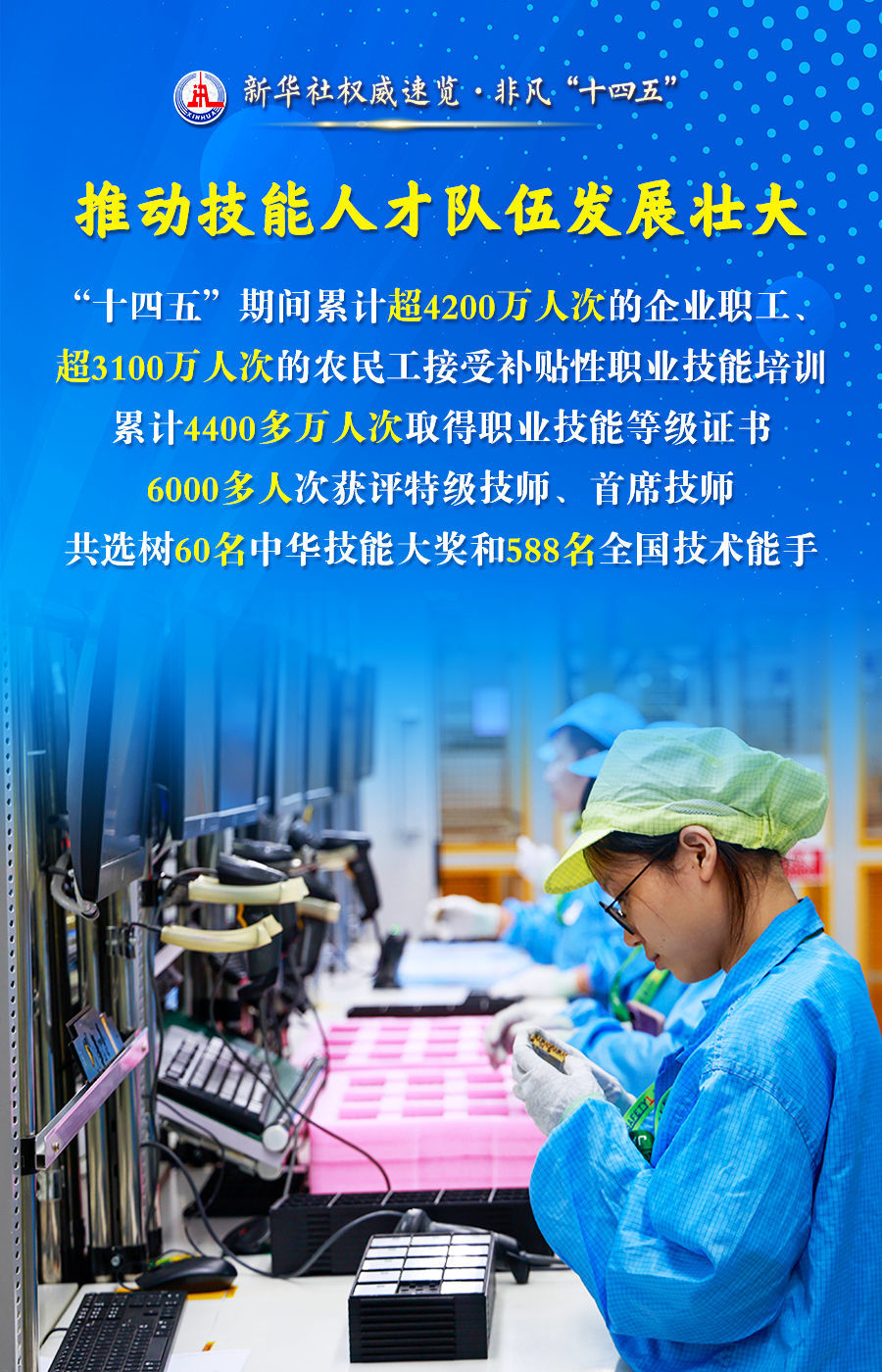 技能高、就业好。“十四五”以来,我国累计面向9200万人次开展补贴性职业技能培训,紧跟市场动向发布72个新职业、颁布328个国家职业标准,着力激发各类人才干事创业的活力。目前,我国专业技术人才超过8000万人,技能劳动者总量超过2.2亿人,其中高技能人才超过7200万人,为推动高水平科技自立自强、建设现代化产业体系提供了坚实人才支撑。