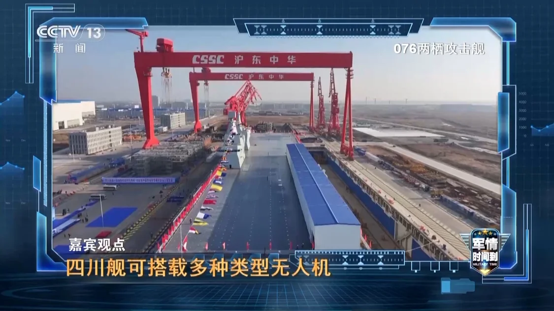 作为我国自主研制建造的076型两栖攻击舰首舰,又是推进海军转型建设发展,提升远海作战能力的关键装备,四川舰的满载排水量是4万余吨。
