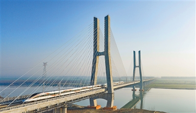 12月26日,列车行经沪渝蓉沿江高铁武汉—宜昌段钟祥汉江特大桥。 |