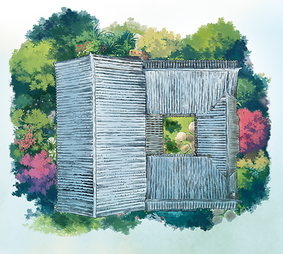 “一颗印”民居在云南主要分布在滇中地区,尤其是昆明。昆明地处低纬度、高海拔的云贵高原,日照充足,加上人口稠密、用地紧张,促使“一颗印”民居出现——这种建筑空间紧凑,体量适中,小巧灵便,无固定朝向,能随山坡走势排布;其布局灵活多变,既可单栋散点分布,也可多栋联排组成复合院落;整体外观敦实质朴。可以说,“小”(空间紧凑)、“灵”(布局灵活)、“野”(外观质朴)是“一颗印”区别于其他类型合院民居的显著特征。