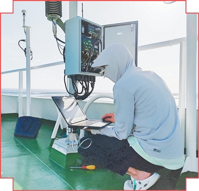 许峰铭在调试船舶站的气象设备。 |
