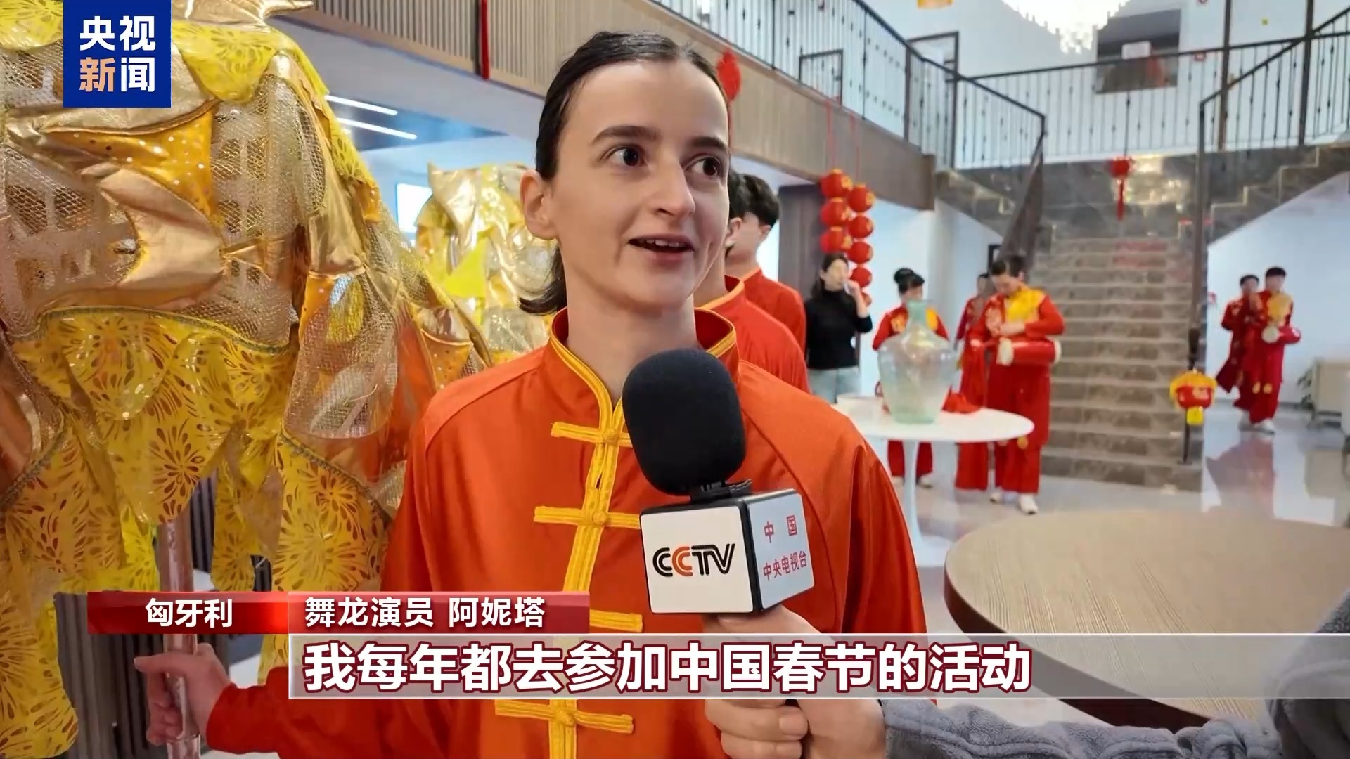 舞龙演员 阿妮塔:我每年都去参加中国春节的活动,包括在布达佩斯唐人街举行的庙会。我经常参加与春节有关的活动,非常享受春节文化氛围。