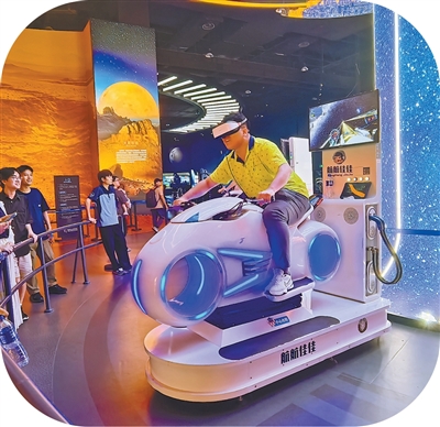 参加两岸交流活动的台湾青年在广东珠海太空中心体验互动项目。 |